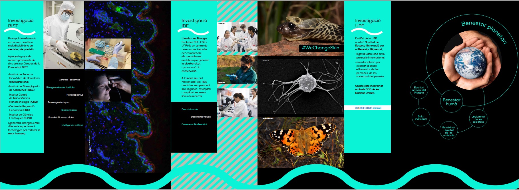 La exposición explica de forma visual la investigación en biomedicina, biodiversidad y bienestar planetario que el BIST, el IBE y la UPF desarrollarán, respectivamente, en el nuevo complejo del "Mercat del Peix".