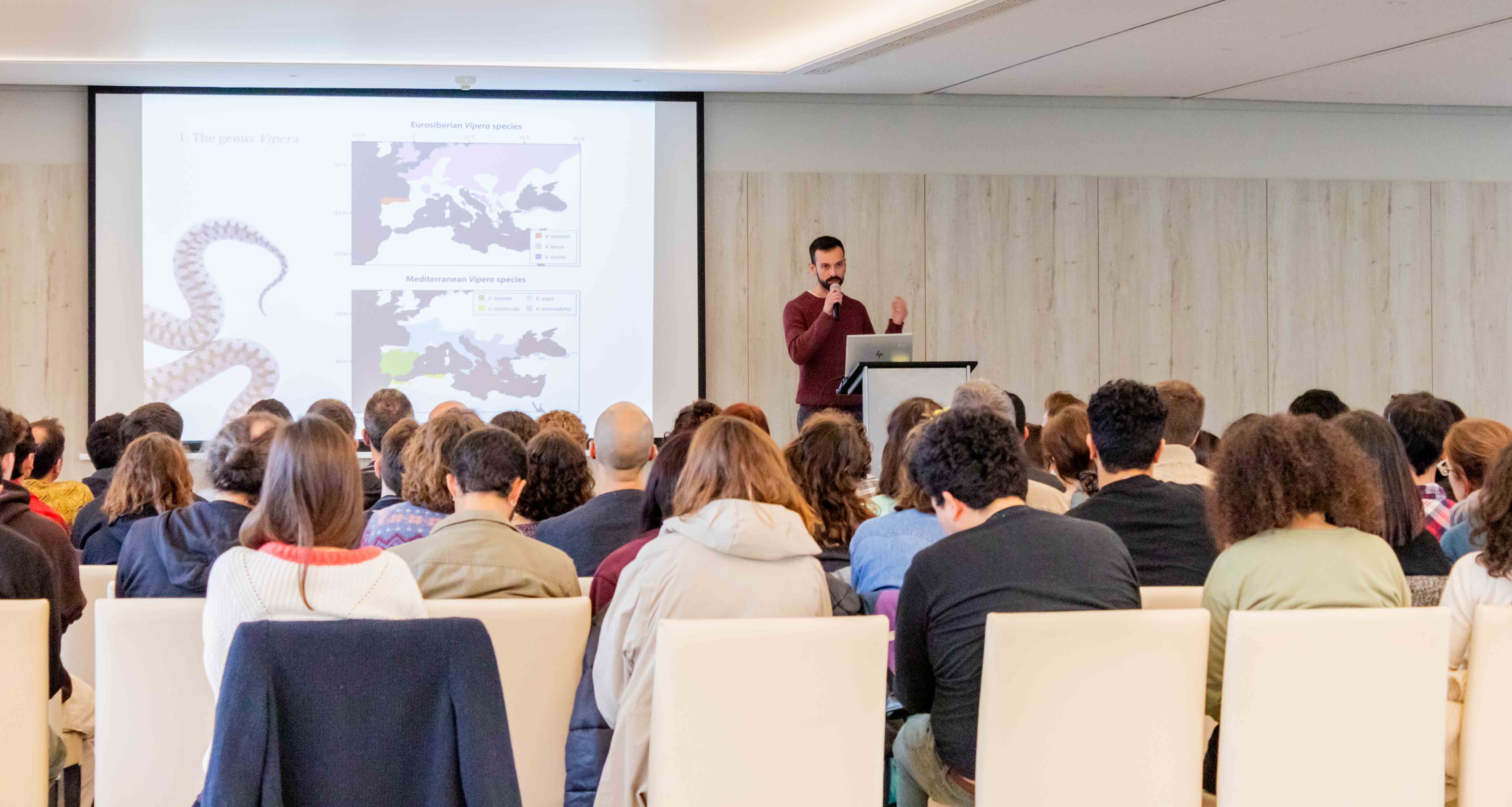 Los investigadores predoc y postdoc del IBE, el ICP Miquel Crusafont, el laboratorio de Irimia y el laboratorio de Sol compartieron su investigación con pasión y concisión.