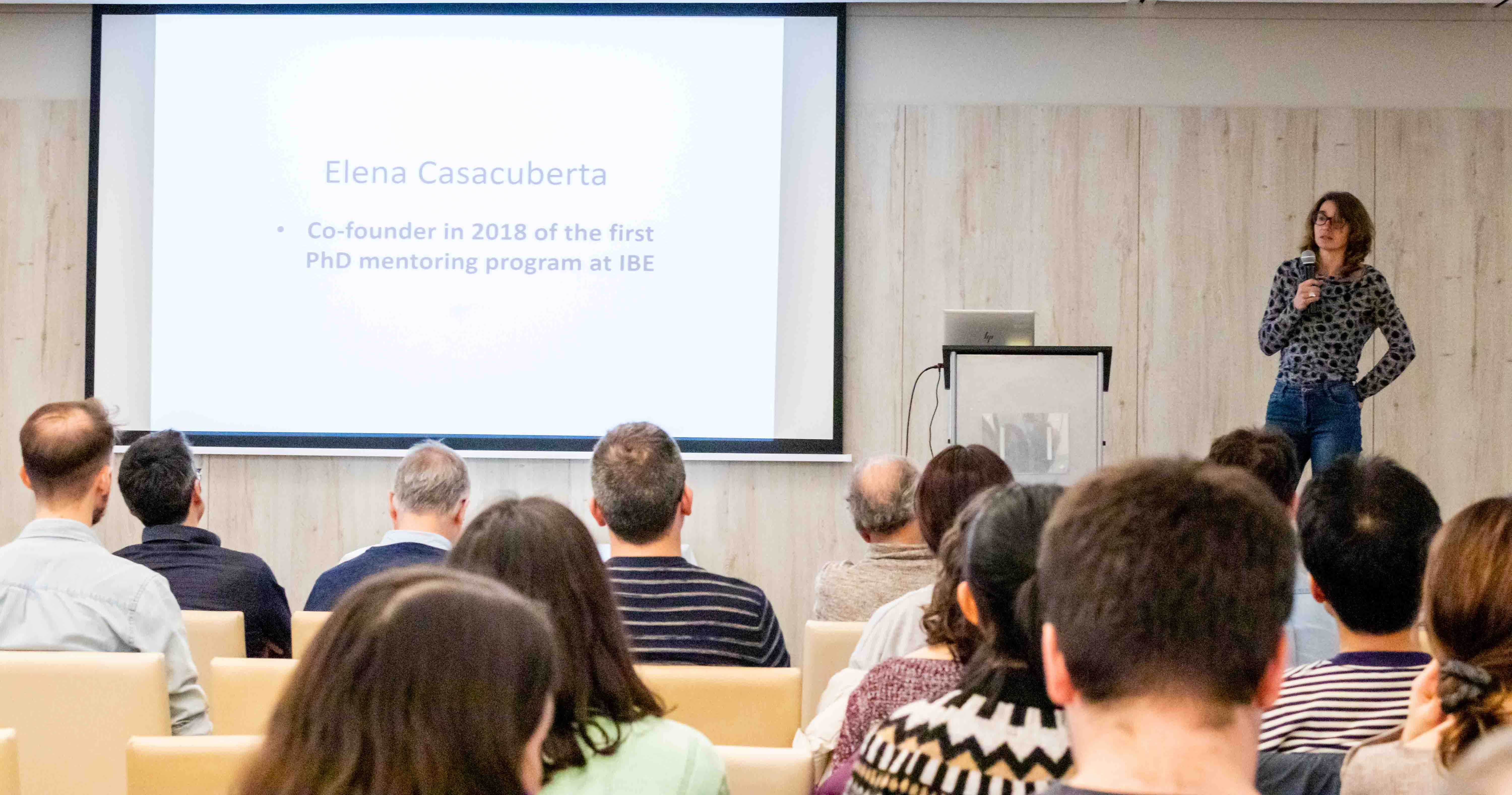 Elena Casacuberta, investigadora principal del IBE, dio visibilidad a las iniciativas de mentorazgo tanto del CSIC como de la SESBE en una charla informativa en el último retiro institucional. Explicó los beneficios del Programa de Mentoría y cómo este puede enriquecer la experiencia profesional tanto de los mentores como de los mentorados.