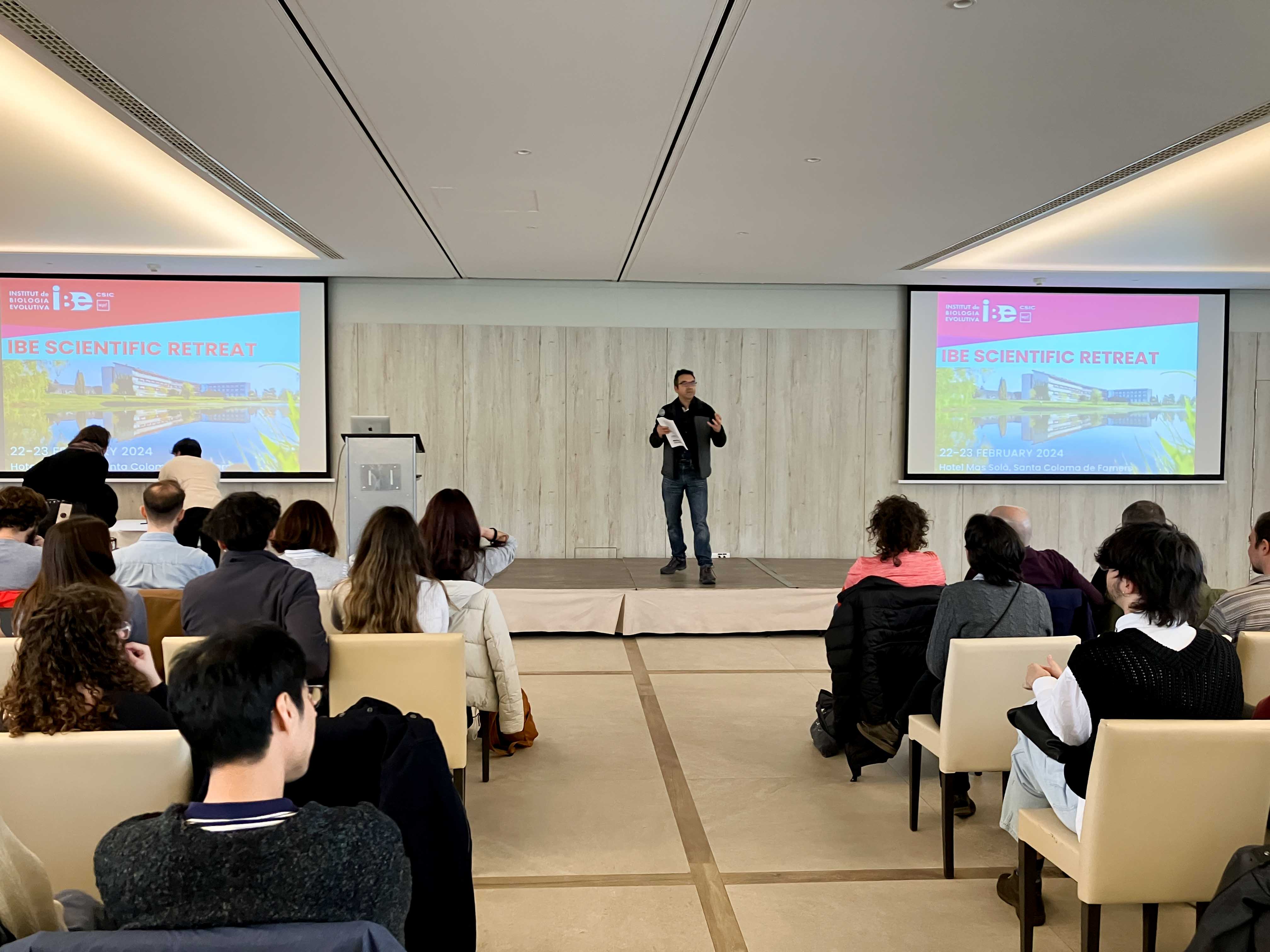 El 21 y 22 de febrero tuvo lugar el retiro bienal del Instituto de Biología Evolutiva (IBE) en el Hotel Mas Solà, ubicado en Santa Coloma de Farners. El evento reunió a 160 participantes que disfrutaron de dos días llenos de presentaciones estimulantes, conversaciones enriquecedoras y animados encuentros sociales.