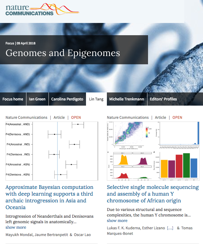 Both articles were picked by Lin Tang, editor of the Genomes and Epigenomes Highlights section. Nature Communications Editors’ Highlights page provides a snapshot of some of the most exciting work published in the selected research areas at Nature Communications.