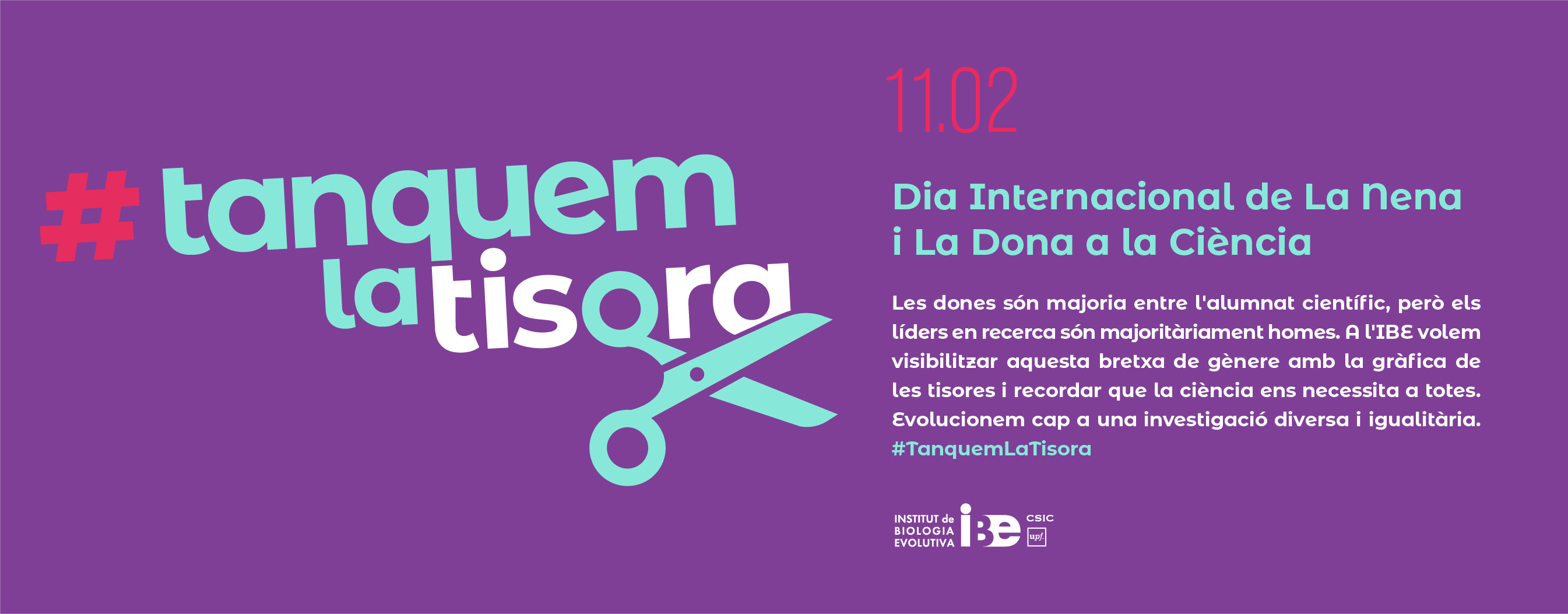 L'Institut de Biologia Evolutiva (IBE, CSIC-UPF) llança la campanya en xarxes socials " Tanquem la Tisora" amb motiu del Dia Internacional de la Dona i la Nena a la Ciència. La iniciativa, impulsada per la Unitat de Comunicació i Difusió i el Comitè de Diversitat de l'IBE , té com a objectiu visibilitzar la bretxa de gènere al món de la recerca amb la campanya #TanquemLaTisora que s’extendrà durant les properes setmanes a xarxes socials.