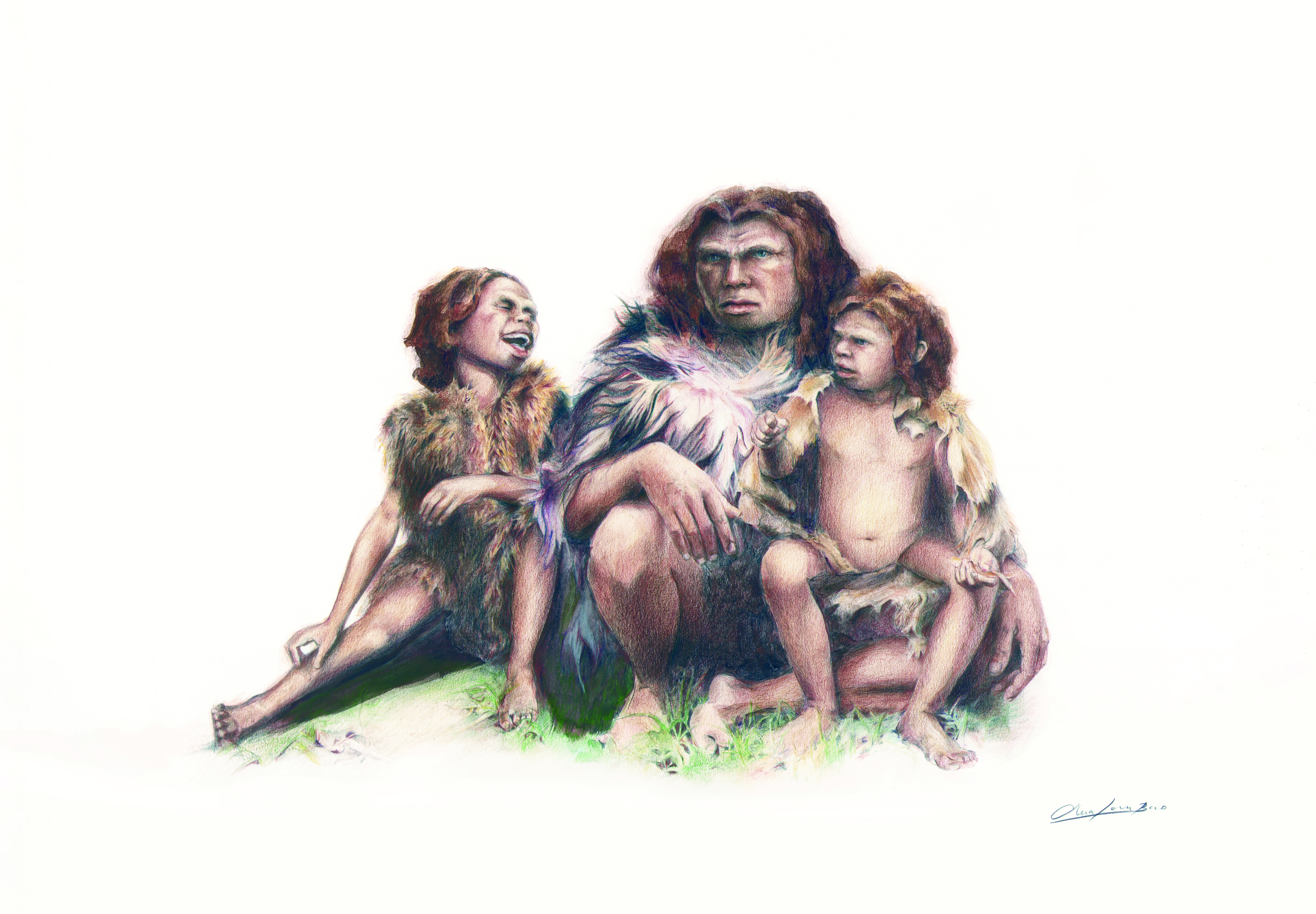Illustration of the three Neanderthal individuals from Cova Simanya. Author: Ana Lombao.