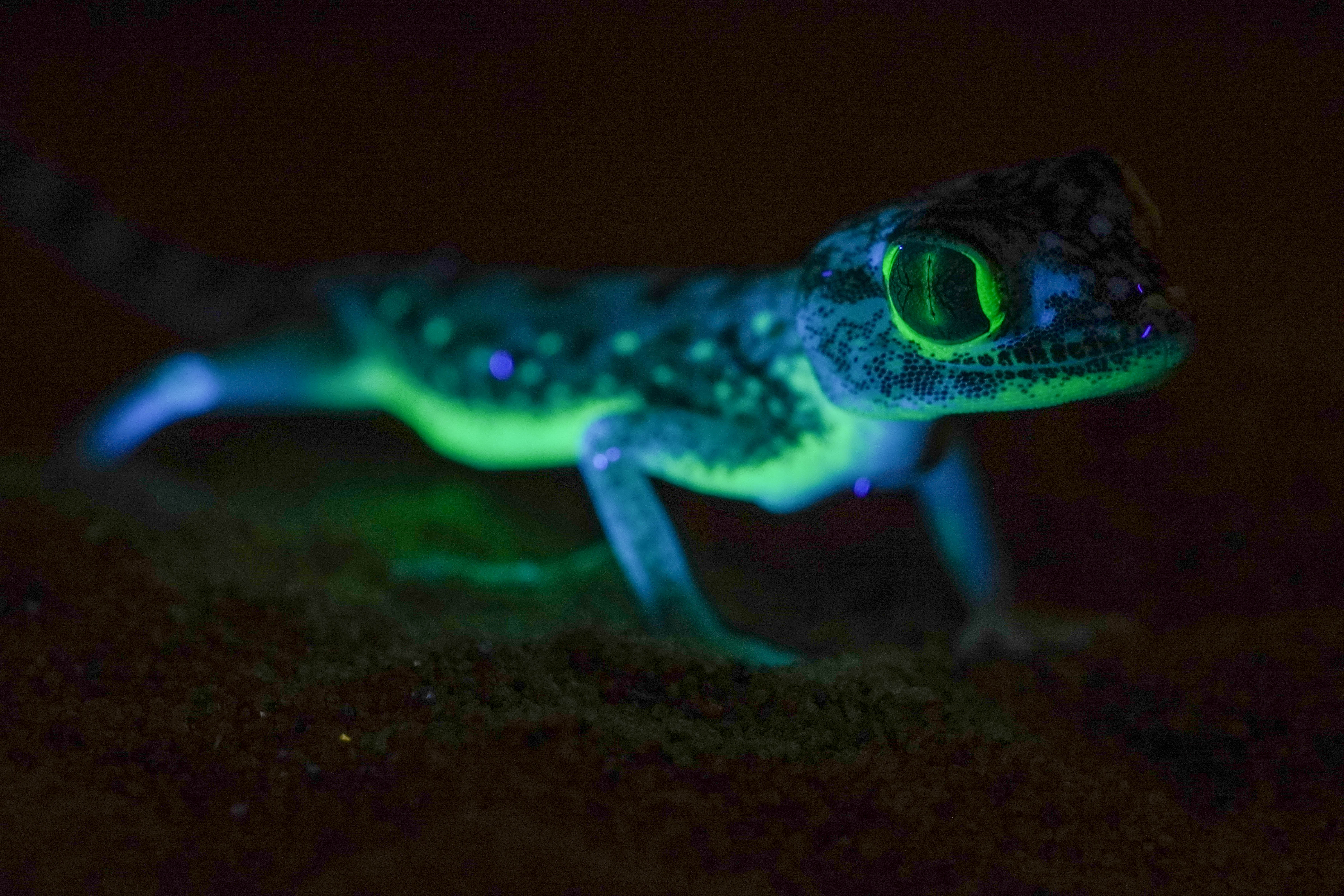 An international team led by IBE researchers has discovered that several Arabian desert geckos show unexpected and vivid skin fluorescence.